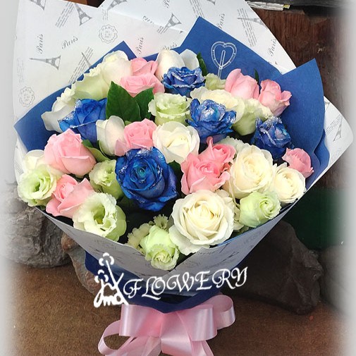 fa3102-33朵銀藍玫瑰花束