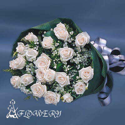 主要花材:白玫21朵、深山櫻
