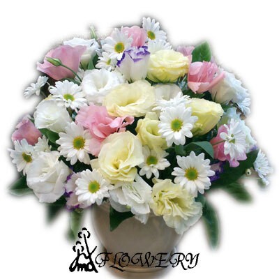 主要花材:桔梗.玫瑰.雛菊及綠色配材