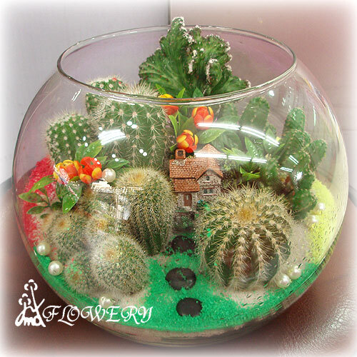 仙人掌玻璃圓球造景組合盆栽-ge3351