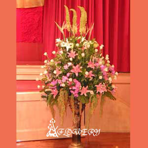 主要花材:進口虎尾百合、香水百合、玫瑰花、天堂鳥