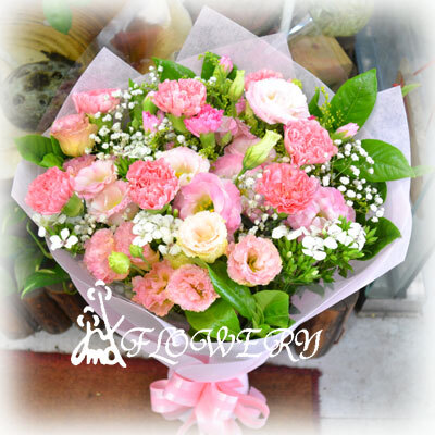 花材:康乃馨,桔梗花,深山櫻,滿天星及其他葉材