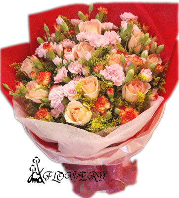 花材:康乃馨,玫瑰花,麒麟草其他綠色葉材