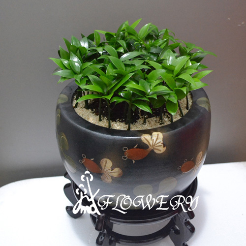 竹柏為常綠植物耐久好照顧,花器典雅精緻,植物活力無窮!象徵財運旺旺來;祝賀開幕、喬遷、榮陞、室內綠化...