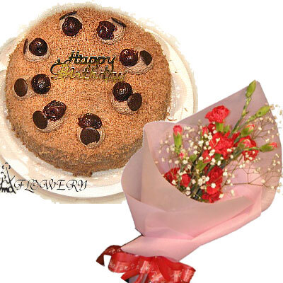 主要內容:8寸蛋糕1個、康乃馨花束1束
