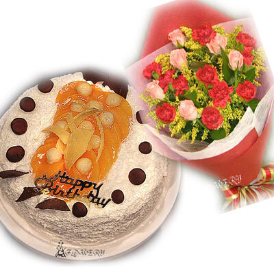 主要花材:8寸蛋糕花束:康乃馨花束1束
