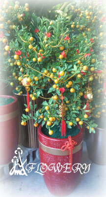 主要花材:金桔樹尺寸:約35x35x120
